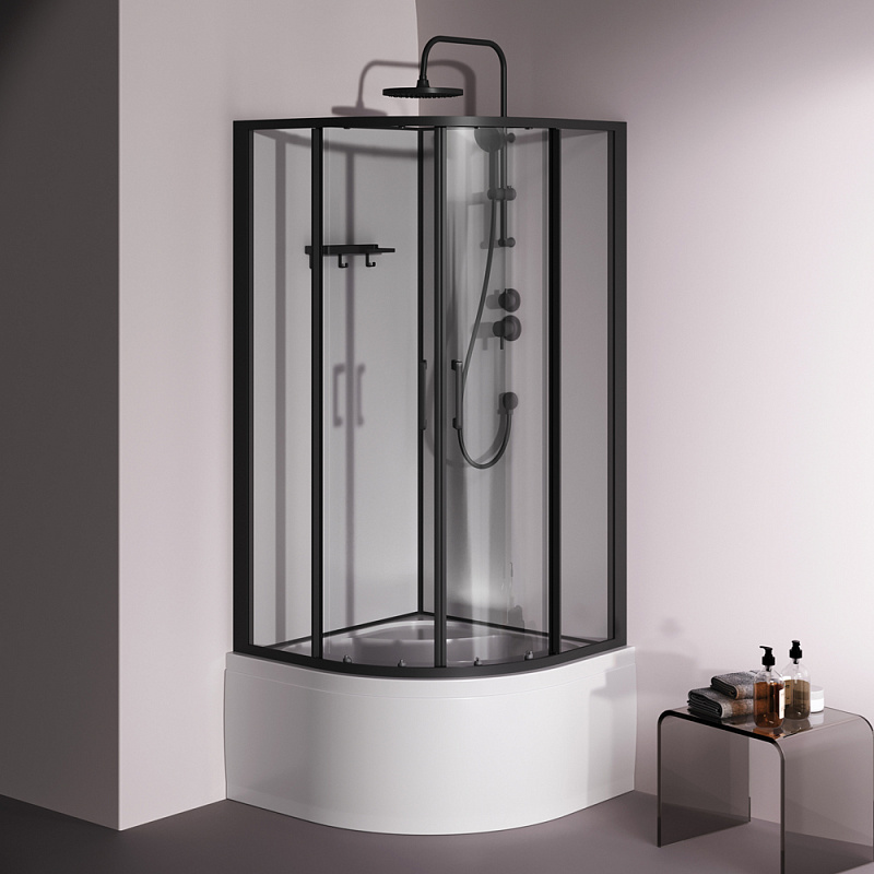 Душевая кабина 90x90 AM.PM Above W9XC-401A-9090BT профиль черный матовый, высокий поддон