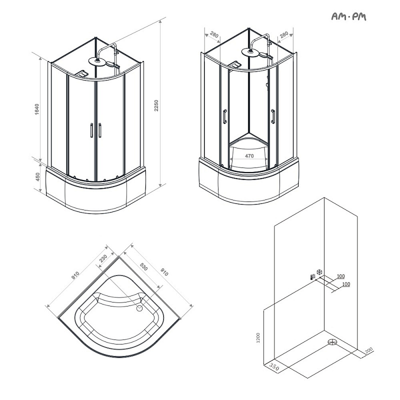Душевая кабина бренда AM.PM коллекции Above без крыши с верхним тропическим душем представляет стильное решение для вашей ванной комнаты. Душевая кабина отлично впишется в ваш интерьер. Форма кабины - 1/4 круга. Цвет профиля - серебристый. Размер (Ш/Г/В): 910x910x2250 мм. Высота поддона - 450 мм. Материал задних стенок - стекло. Материал дверок - прозрачное стекло. Толщина стекла - 4 мм.