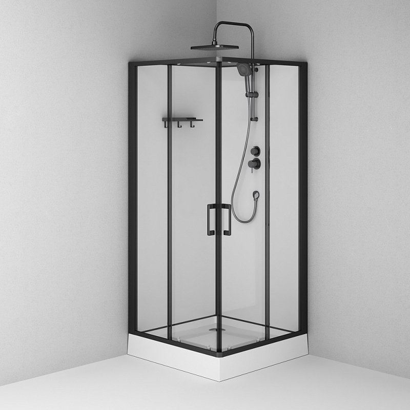 Душевая кабина 90x90 AM.PM Above W9XC-403-9090BT профиль черный матовый, низкий поддон