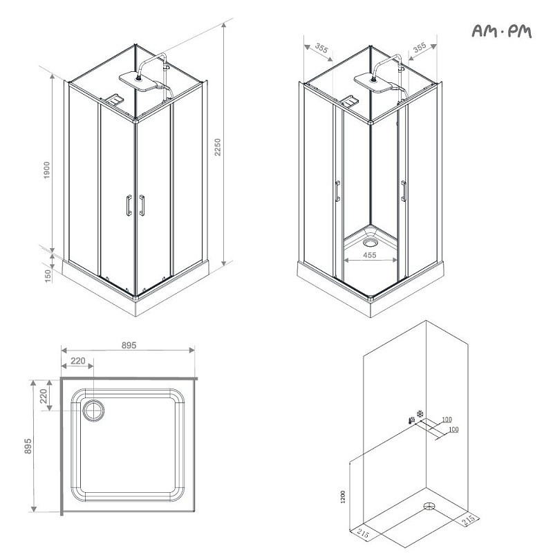 Душевая кабина бренда AM.PM коллекции Above без крыши с верхним тропическим душем представляет стильное решение для вашей ванной комнаты. Душевая кабина отлично впишется в ваш интерьер. Форма кабины - квадратная. Цвет профиля - черный матовый. Размер (Ш/Г/В): 895x895x2250 мм. Высота поддона - 150 мм. Материал задних стенок - стекло. Материал дверок - прозрачное стекло. Толщина стекла - 4 мм.