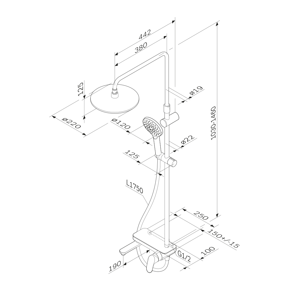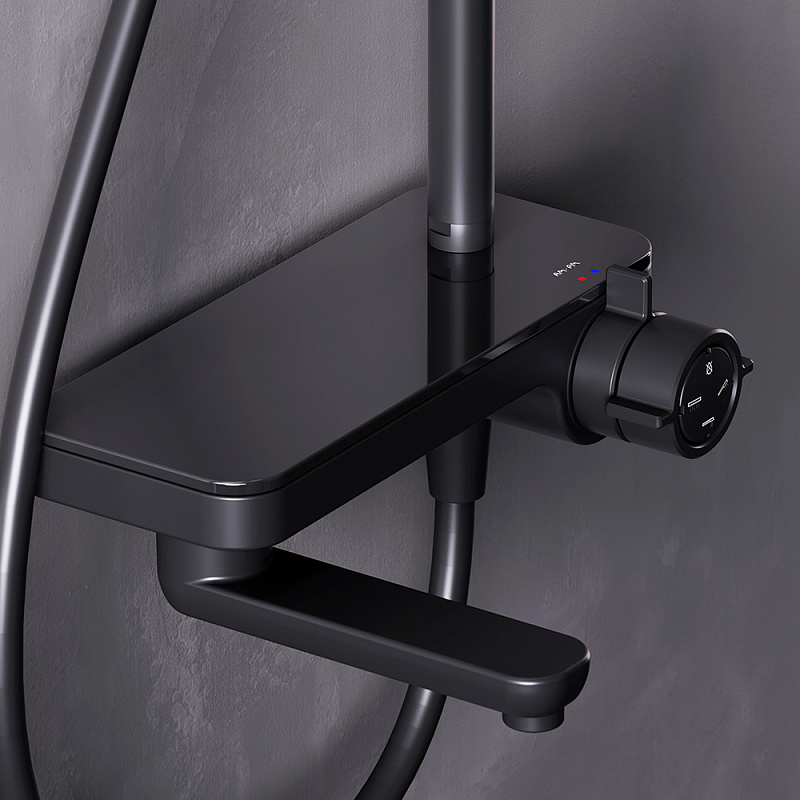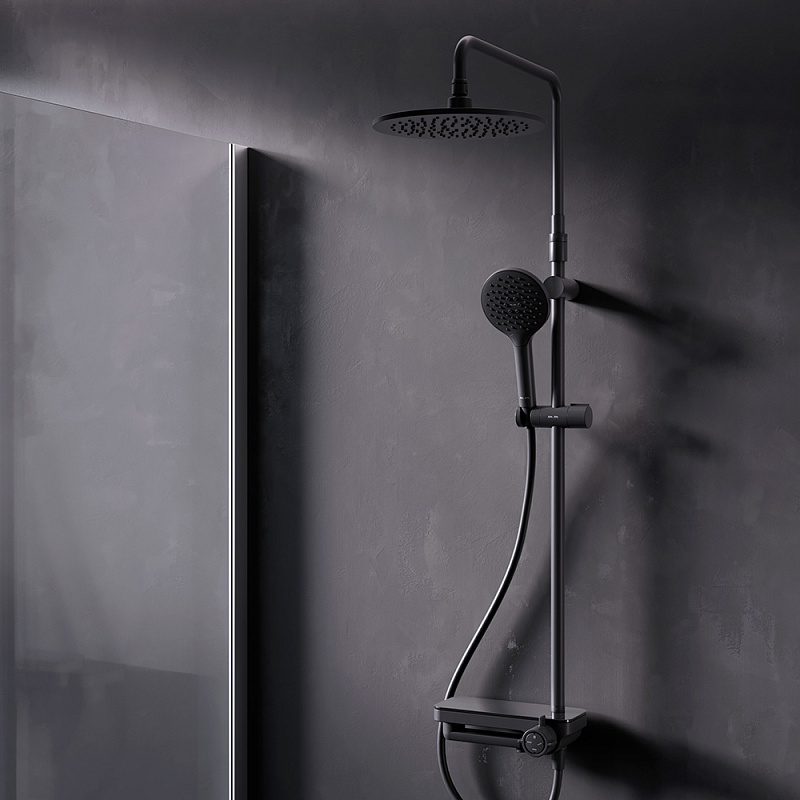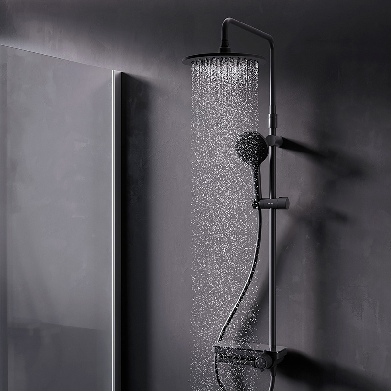 Душевая система AM.PM Moxie F079M722 стойка с тропическим душем, смесителем, черная