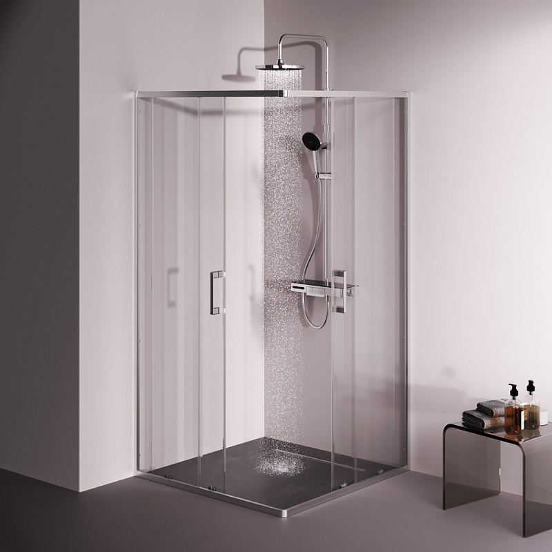 Душевое ограждение от бренда AM.PM из коллекции Above - новая функциональная конструкция для оформления душевой зоны в вашем интерьере ванной комнаты. Каждая деталь соответствует высоким требованиям к качеству и эргономике. Стильные коннекторы с логотипом AM.PM, модные ручки с паттерном, дизайнерские ролики повторяющие форму профиля. Современный дизайн, ультратонкие профили шириной всего 30 мм создают максимально воздушный дизайн, минимум профиля и максимум стекла. Цвет профиля - серебристый. Размер (Ш/Г/В): 980-990x980-990x1900 мм. Материал ограждения - прозрачное стекло; алюминий. Толщина стекла - 5 мм. Форма - квадратная.