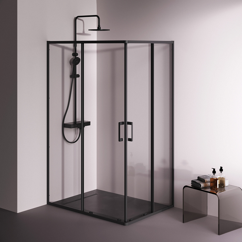 Душевое ограждение от бренда AM.PM из коллекции Above - новая функциональная конструкция для оформления душевой зоны в вашем интерьере ванной комнаты. Каждая деталь соответствует высоким требованиям к качеству и эргономике. Стильные коннекторы с логотипом AM.PM, модные ручки с паттерном, дизайнерские ролики повторяющие форму профиля. Современный дизайн, ультратонкие профили шириной всего 30 мм создают максимально воздушный дизайн, минимум профиля и максимум стекла. Цвет профиля - черный матовый. Размер (Ш/Г/В): 1184-1194x884-894x1900 мм. Материал ограждения - прозрачное стекло; алюминий. Толщина стекла - 5 мм. Форма - прямоугольная.