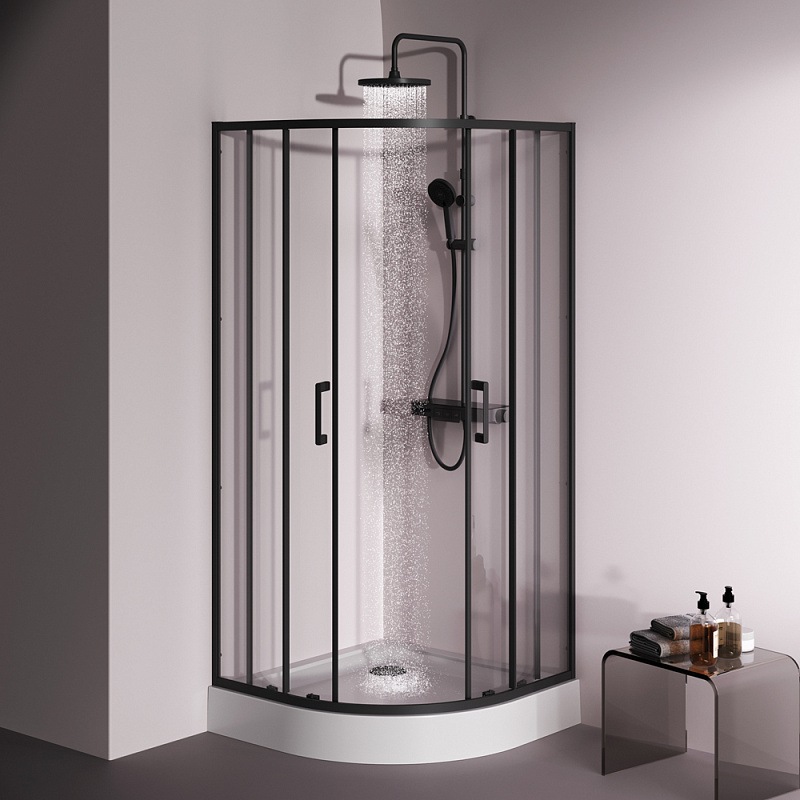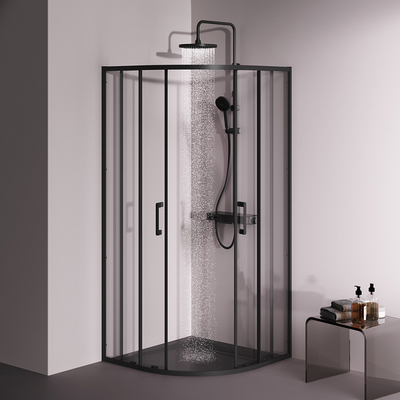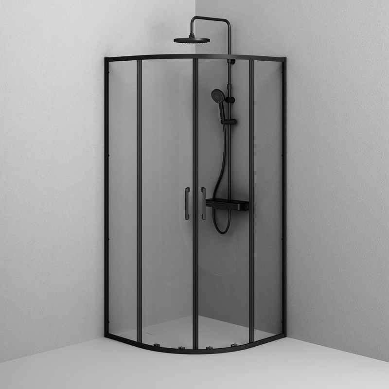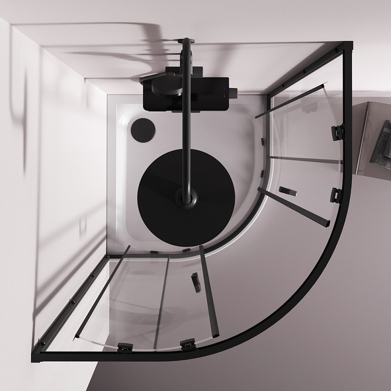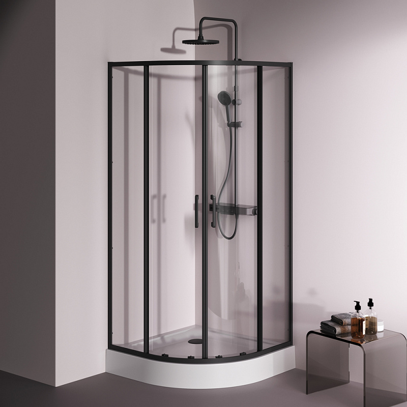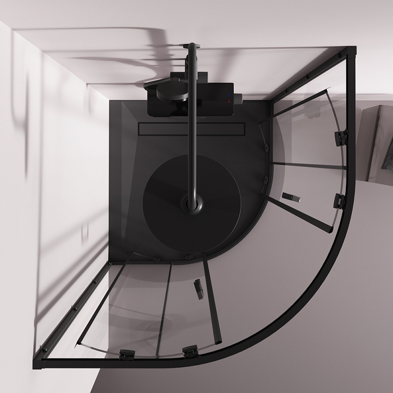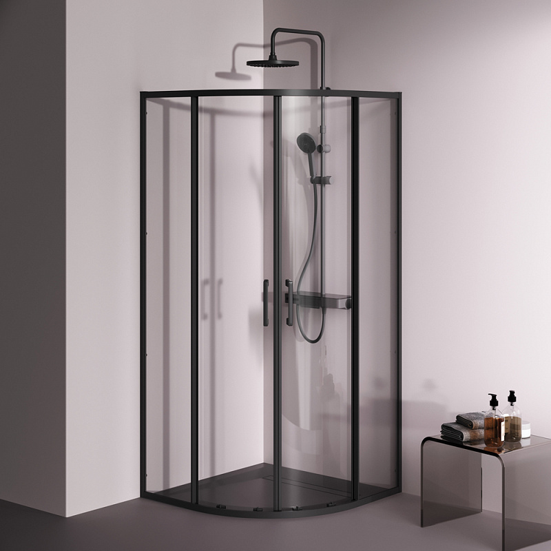 Душевое ограждение от бренда AM.PM из коллекции Above - новая функциональная конструкция для оформления душевой зоны в вашем интерьере ванной комнаты. Каждая деталь соответствует высоким требованиям к качеству и эргономике. Стильные коннекторы с логотипом AM.PM, модные ручки с паттерном, дизайнерские ролики повторяющие форму профиля. Современный дизайн, ультратонкие профили шириной всего 30 мм создают максимально воздушный дизайн, минимум профиля и максимум стекла. Цвет профиля - черный матовый. Размер (Ш/Г/В): 880-890x880-890x1900 мм. Материал ограждения - прозрачное стекло; алюминий. Толщина стекла - 5 мм. Форма - 1/4 круга.