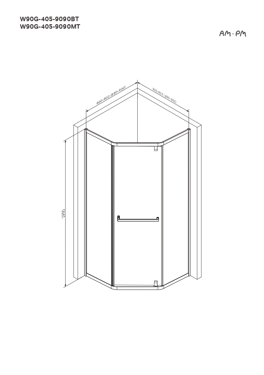 Душевое ограждение без поддона 90x90 AM.PM Gem W90G-405-9090-BT профиль черный
