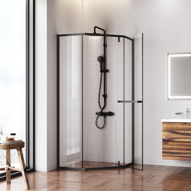 Душевое ограждение от бренда AM.PM из коллекции Gem - прекрасный пример дизайна для любимого дома на все времена. Цвет профиля - черный матовый. Размер (Ш/Г/В): 900x900x1950 мм. Материал ограждения - прозрачное стекло; алюминий. Толщина стекла - 5 мм, у дверки - 6 мм. Форма - пятиугольная. Совместимо с поддоном - артикул W90T-405-090WT (приобретается отдельно).