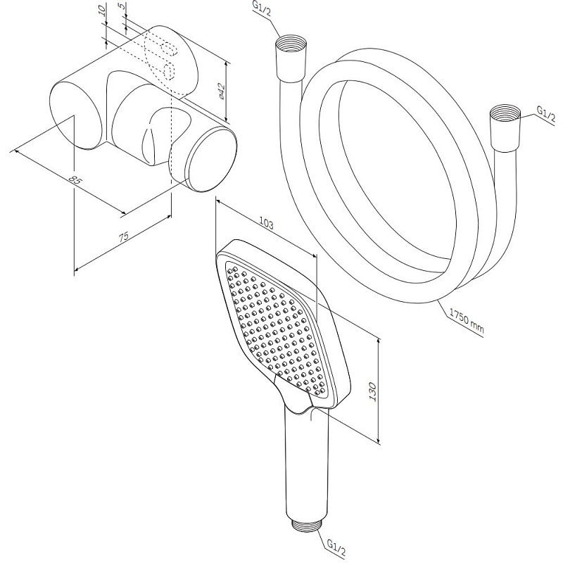 Душевой гарнитур AM.PM Func F0118F000 держатель, шланг, лейка 3 режима, хром