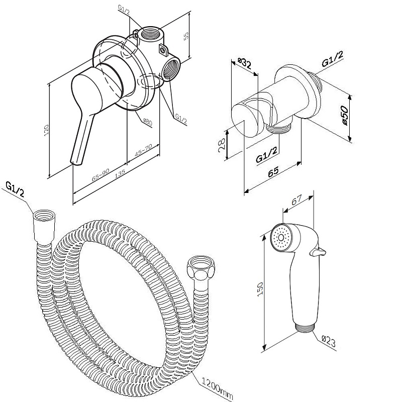 Гигиенический душ со смесителем AM.PM X-Joy S F40H85B99 золото встраиваемый, шланг 1200, держатель