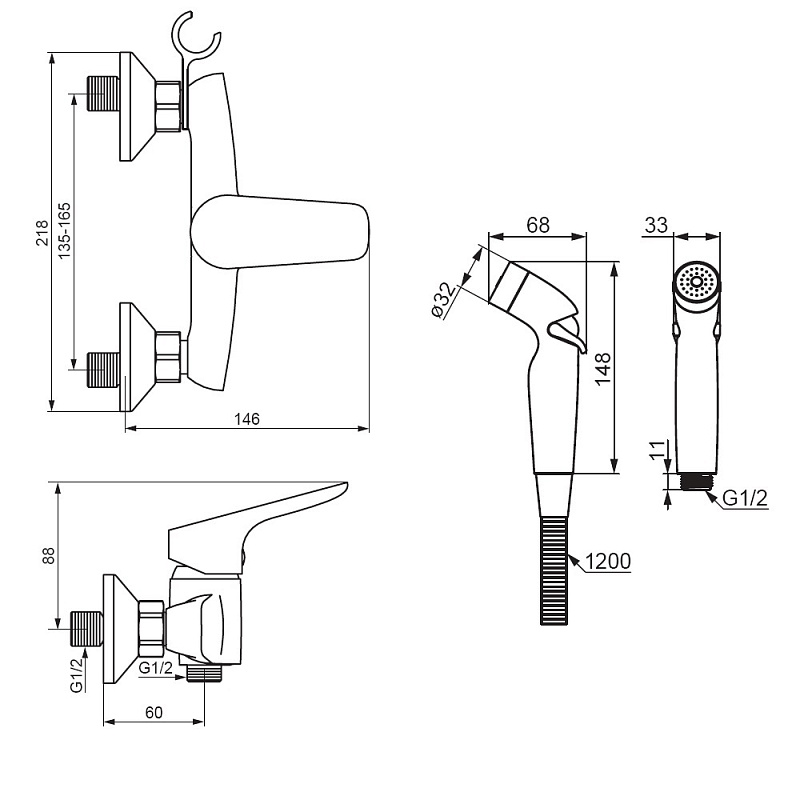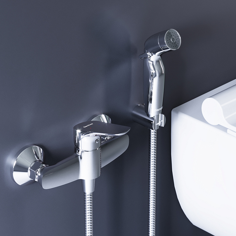 Смесители Гигиенический душ со смесителем Damixa Jupiter 778000000 хром встраиваемый, шланг 1200, держатель купить в Москве.