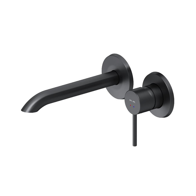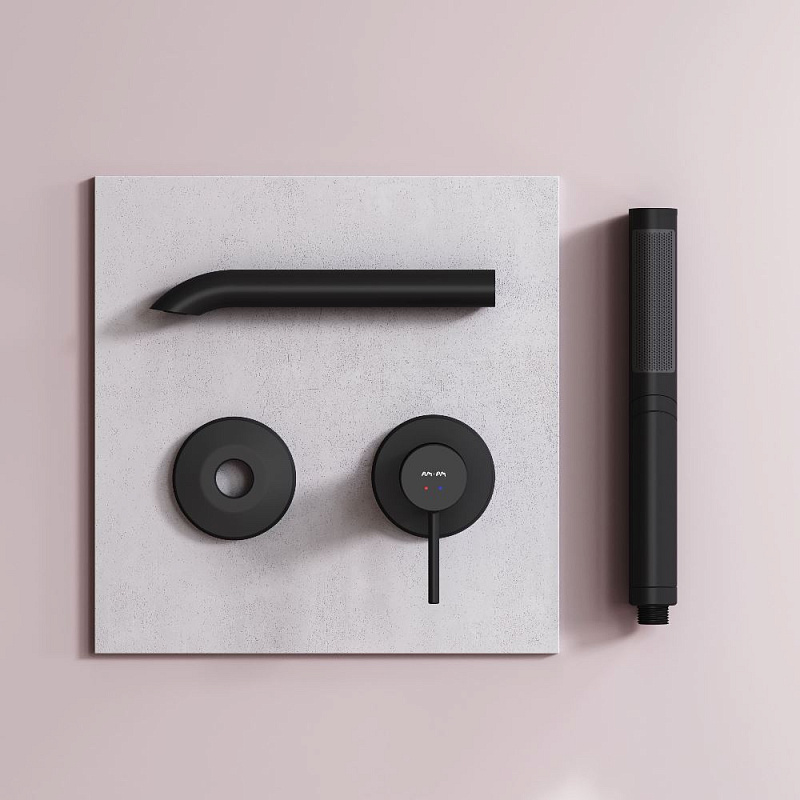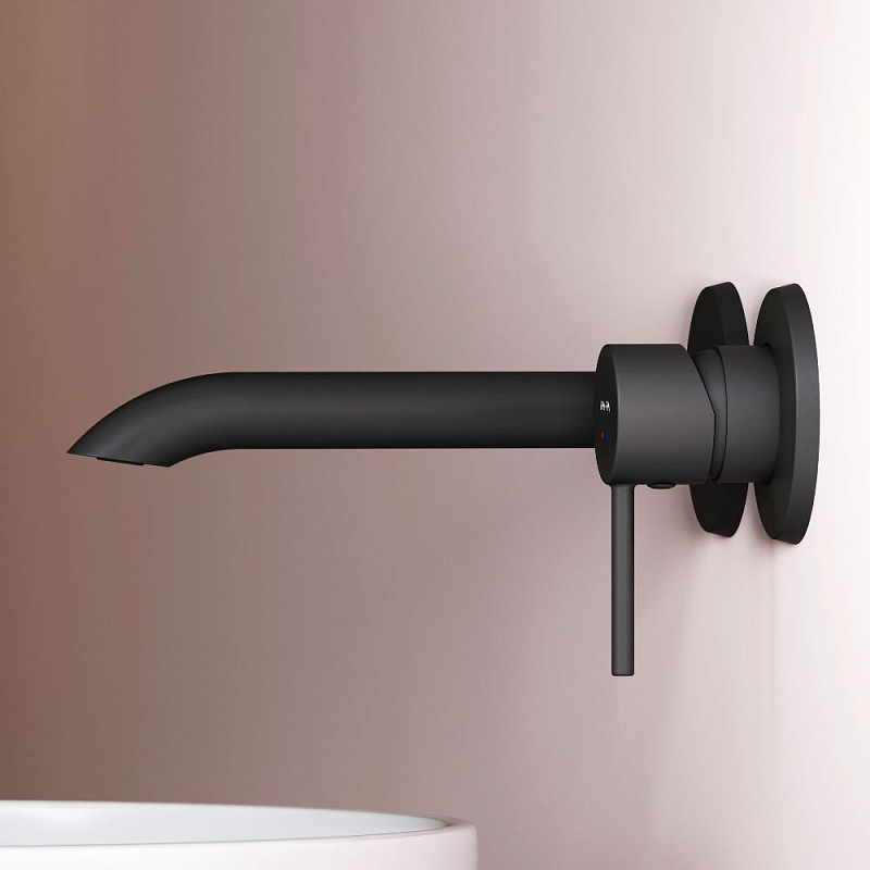 Выверенный изгиб в сочетании с чистой горизонталью излива подчёркивает архитектурную чистоту формы. Такое решение требует высокой точности производства и формирует цельный, визуально безупречный силуэт. А монтируемая в стену конструкция – это ответ на меняющиеся потребности клиентов, которые ищут простые и стильные решения для ванной комнаты. Размер ручек (Ш/Г/В): 49x49x62,8 мм. Размер излива (Ш/Г/В): 190x222x116 мм. Материал - латунь. Цвет - черный.