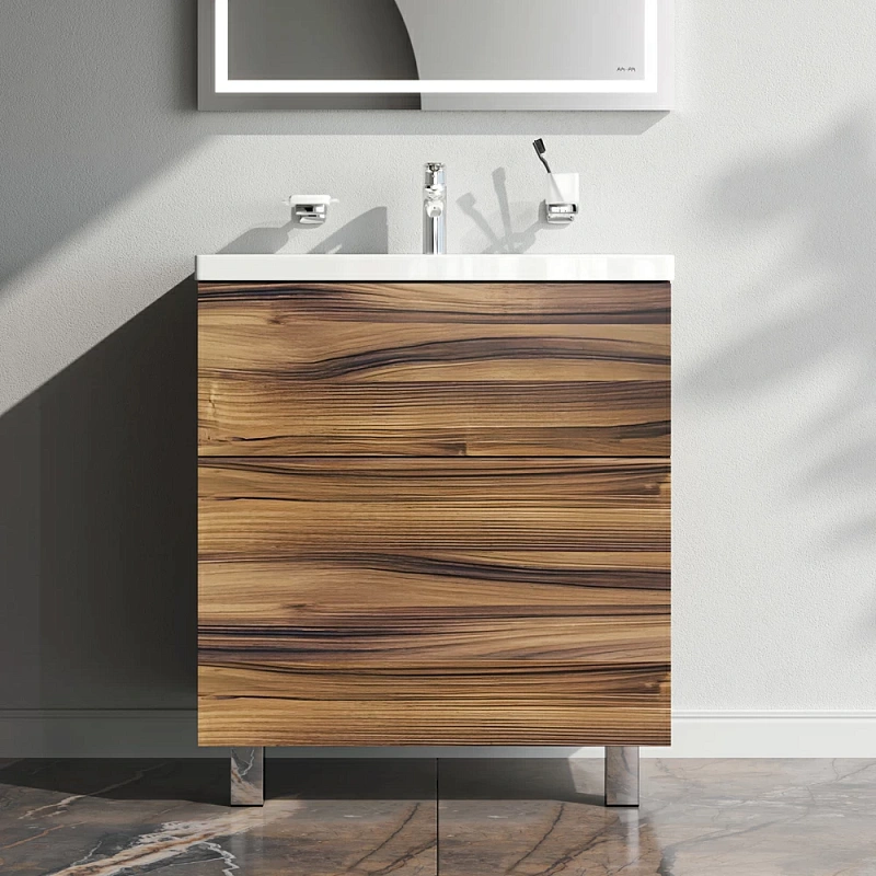 Тумба с раковиной и смесителем 75 AM.PM Gem M90FSX0752HF напольная на ножках орех