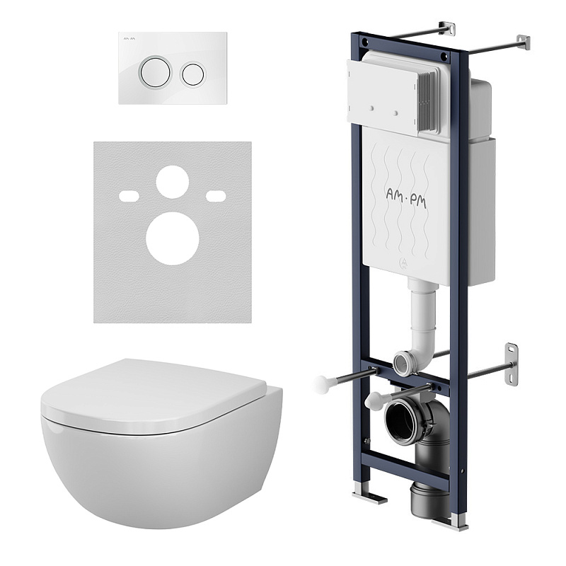 Унитаз подвесной безободковый с инсталляцией AM.PM Above IS110101.9X1900 сиденьем микролифт, белой механ. клавишей купить в Москве.