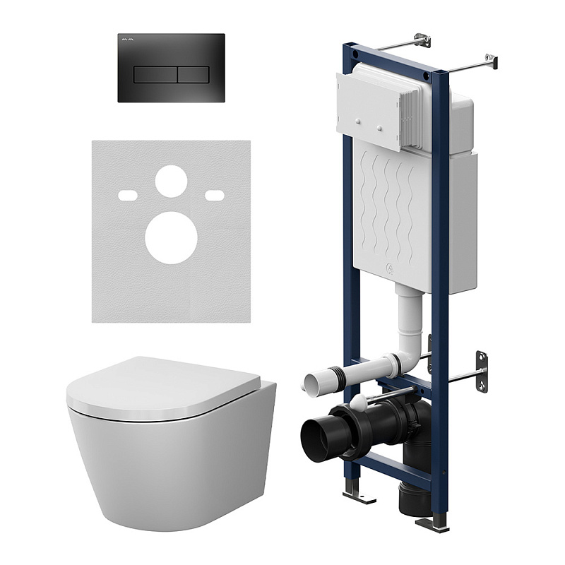 Унитаз подвесной безободковый с инсталляцией AM.PM X-Joy IS110338.851900 сиденьем микролифт, черной механ. клавишей купить в Москве.