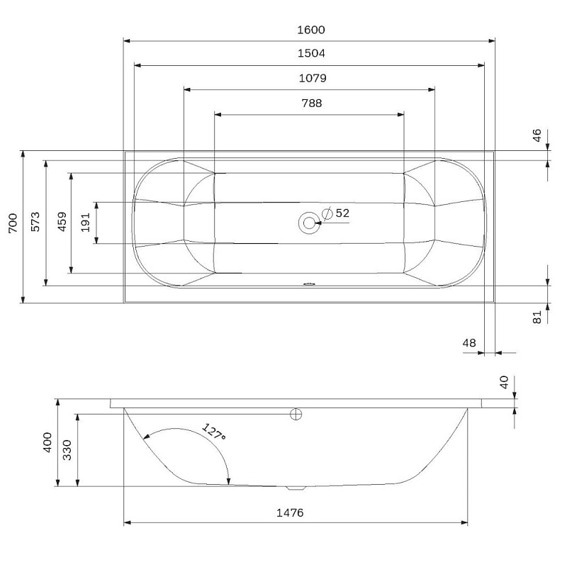 Прямоугольная ванна бренда AM.PM коллекции Above впервые в доступном сегменте ванна с центральным сливом-переливом (признак премиального сегмента). Размер изделия (Ш/Г/В): 1600x700x400 мм. Цвет – белый глянцевый. Материал - ABS, PMMA.