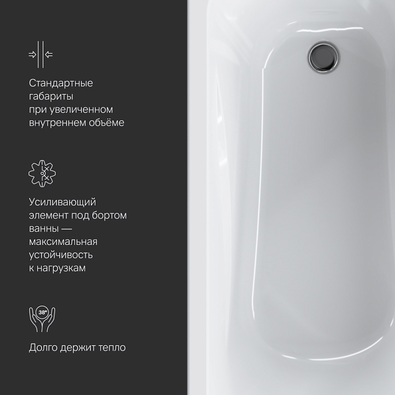 Включите в комплект, обеспечивающий надежность, каркас для ванны 150 AM.PM Sense W76A-150-070W-R (установка ванны без каркаса не допускается производителем). Кроме того, вы можете добавить в заказ фронтальную панель 160x70 AM.PM W76A-160-070W-P, закрывающую пространство под ванной, слив-перелив AM.PM W90A-000-OFI.