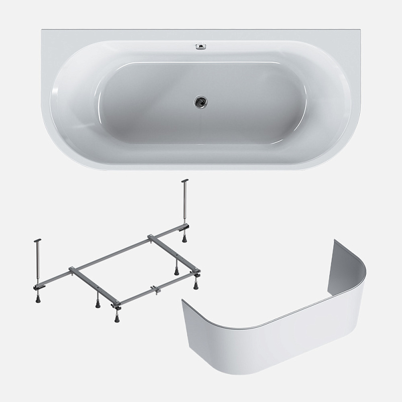 Ванна акриловая закругленная 170x75 AM.PM X-Joy W94A-170U75W-ARP белая глянцевая, комплект c каркасом, панелью