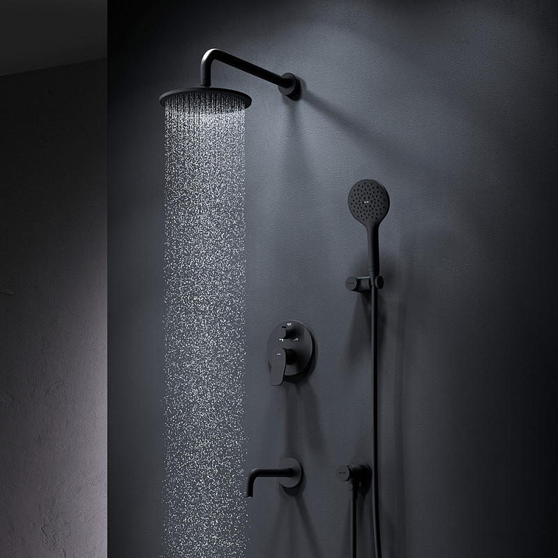 Встраиваемая душевая система AM.PM X-Joy FB85A3RH32 черный: тропический верхний душ, излив с душевой лейкой