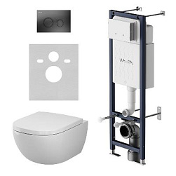 Унитаз подвесной безободковый с инсталляцией AM.PM Above IS110138.9X1900 сиденьем микролифт, черной механ. клавишей