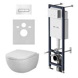Унитаз подвесной безободковый с инсталляцией AM.PM Above IS110101.9X1900 сиденьем микролифт, белой механ. клавишей