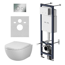 Унитаз подвесной безободковый с инсталляцией AM.PM Above IS110151.9X1900 сиденьем микролифт, механ. клавишей хром